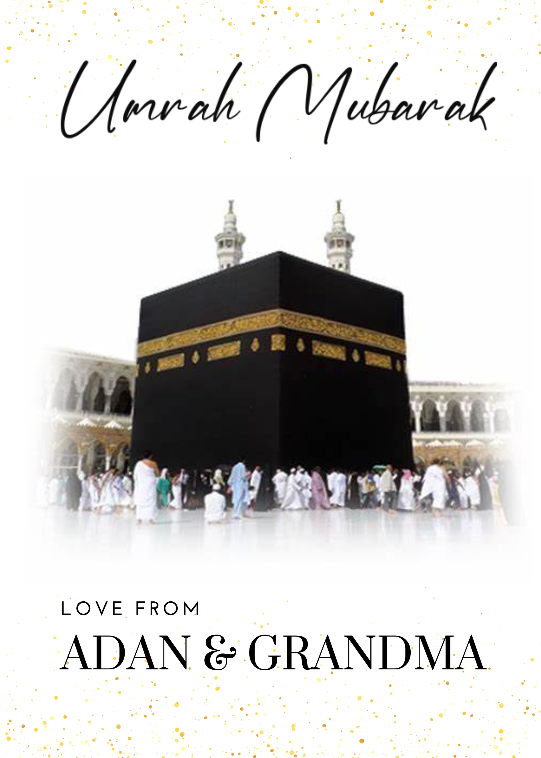 Personalised umrah Mubarak card perfect for a umrah return gift.